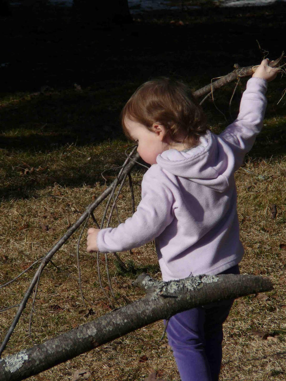 Most of all, however, Kaylee absolutely *LOVES* to be outside. Everything outside is a new discovery to her. She loves to run around and pick up sticks, touch the grass, leaves, and trees, and just look at EVERYTHING. It's so neat to see her exploring her surroundings and to remember that for her, all of these experiences she's having are new experiences. I have to remember how much Ian and I were so amazed when we went snorkeling for the first time last year, and remember that Kaylee gets to experience that every day with something.